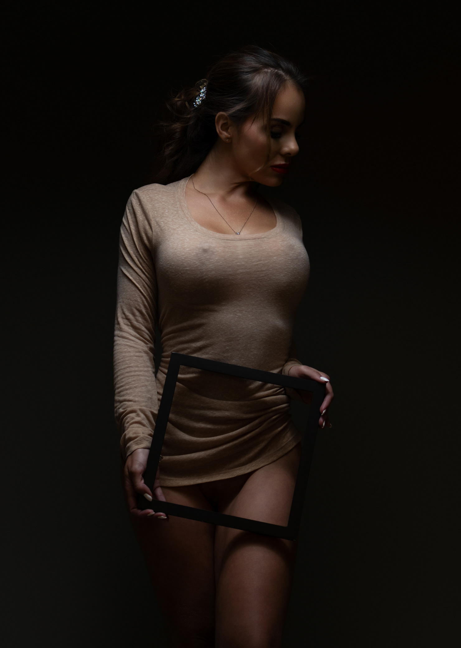 Pero la foto no te está pidiendo permiso. La modelo no está “tentándote”: está existiendo. Sensual, sí. Elegante, también. Dueña de sí, sobre todo. La luz revela lo que vos intentás negar: que lo que te molesta no es su piel… es tu deseo sin disciplina y tu ego sin honestidad.